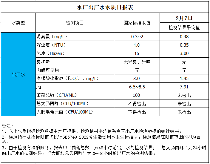 水廠出廠水水質(zhì)日?qǐng)?bào)表(2025-2-7)