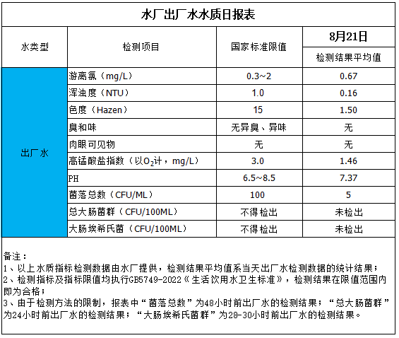 水廠出廠水水質(zhì)日報表(2025-8-21)