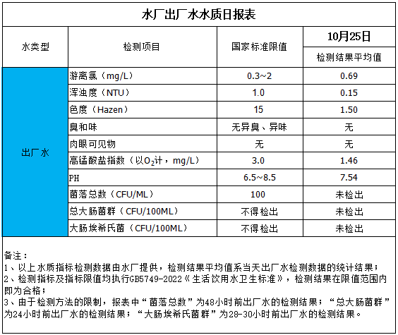 水廠出廠水水質(zhì)日報表(2025-10-25)