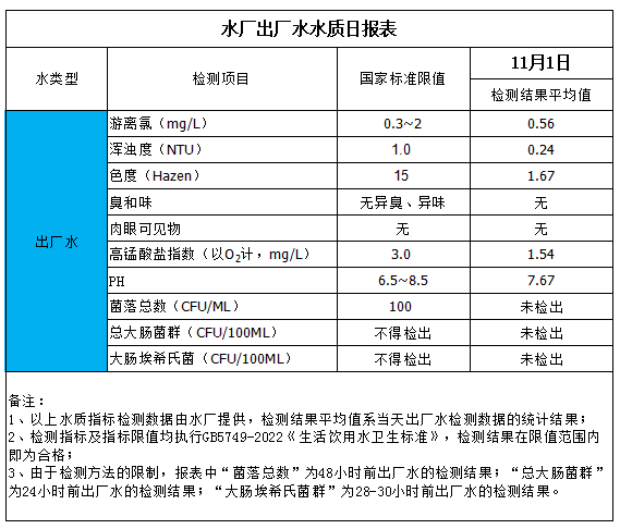 水廠出廠水水質(zhì)日報(bào)表(2025-11-1)