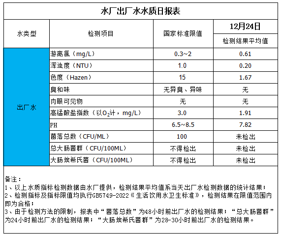 出廠水水質(zhì)日?qǐng)?bào)表(2025-12-24)