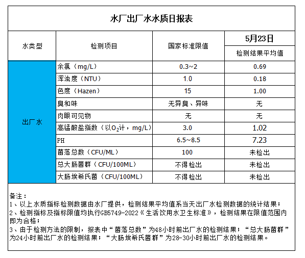水廠出廠水水質(zhì)日報(bào)表(2023-5-23)