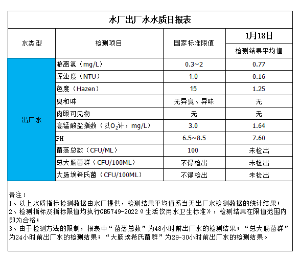 水廠出廠水水質(zhì)日報(bào)表(2024-1-18)