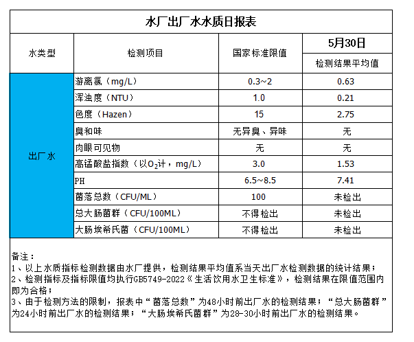 水廠出廠水水質(zhì)日報(bào)表(2024-5-30)