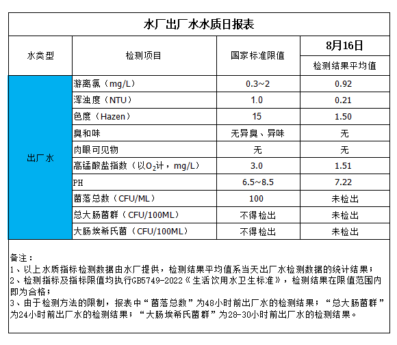 水廠出廠水水質(zhì)日報(bào)表(2024-8-16)