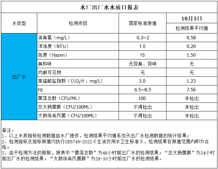 水廠出廠水水質(zhì)日報(bào)表(2024-10-3)