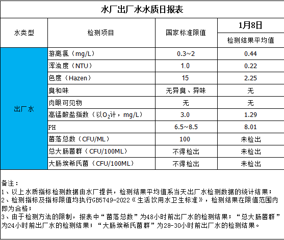 水廠出廠水水質(zhì)日報(bào)表(2025-1-8)